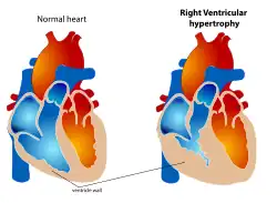 Ainsi, le cœur pulmonaire est une hypertrophie du ventricule droit secondaire à une maladie pulmonaire. L'hypertrophie est une réponse adaptative à une augmentation de la pression à long terme. Les cellules musculaires individuelles grossissent (en épaisseur) et se modifient pour entraîner la force contractile accrue requise pour déplacer le sang contre une plus grande résistance.