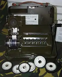 - un système de roues clé (comme pour la machine Hagelin M-209), pour les modèles C-52 et CX-52