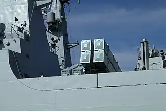 Lanceurs de missiles C-802 montés sur une frégate F-22P de classe Zulfiquar de la marine pakistanaise. | |