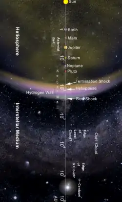 - ↑ application de la formule UA* 150.000.000 (valeur en kilomètre)/C*SA (vitesse de la lumière * nbre de secondes dans une année)