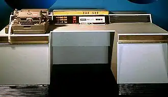 Machine à écrire de console Flexowriter de la CAB 500. Avec lecteur et perforateur de ruban à sept canaux fonctionnant à dix caractères par seconde[1].