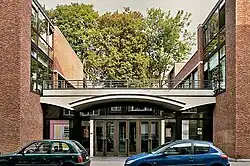 Un bâtiment contemporain a été adossé à l'ancien bâti, il est l’œuvre des architectes Bernard Quirot et associés J. Altuna, JP. Garric, V. Negre. La structure du bâtiment contemporain est réalisée en béton mais doublée d’un contre-mur en brique rouge qui fait écho au style de l’usine à laquelle il est associé. Le bâtiment s’étend du mitoyen est de l’ancienne usine d’électricité secondaire jusqu’à la rue du Couvent. Le raccord a été fait comme suit : l’édifice est construit de plain-pied souligné par une plinthe en pierre bleue, la délimitation entre les deux parties est faite par un bandeau de baies vitrées verticales qui s’étend également le long de la toiture, à sa droite est construite une partie du bâtiment neuf, un parallélépipède vertical de la largeur d’une parcelle bruxelloise et de la même hauteur que le bâtiment originel, la façade dispose d’une unique baie vitrée. L’entrée principale est plus basse et est renfoncée de 1 à 2 mètres par rapport à l’alignement des bâtiments. Le vestibule d’entrée est surplombé d’un auvent courbe recouvert de zinc, élément architectural courbe qui fait écho aux arcs en plein cintre de l’ancienne usine. La partie est et la partie ouest sont reliées par l’entrée non seulement par l’intérieur mais également par l’extérieur, une terrasse recouvre l’entrée ce qui permet d’aller d’une zone à une autre sans devoir passer par la zone d’accueil. Les architectes procèdent à une symétrie du parallélépipède vertical de part et d’autre de l’entrée. Ensuite à droite, un parallélépipède horizontal conserve une façade aux dimensions tectoniques[11], avec uniquement comme ouverture des bandeaux de bais vitrés verticaux ponctuels renfoncés allant du seuil à l’acrotère. En plan, les architectes ont établi une symétrie, d’une part l’ancienne usine avec une partie de la construction contemporaine, d’une autre le reste des constructions neuves. Dans la partie est, le bâtiment principal de même hauteur que l’ancienne usine et parallèle au trottoir possède deux oblongs qui elles sont plus basses, dont une est la façade donnant sur la rue de l’Ermitage décrite plus tôt. La façade rue du Couvent[12] est en forme de H, elle est aveugle mais possède une terrasse entre les deux parties verticales formant le « H ».