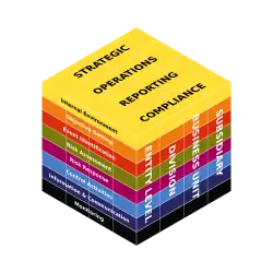 • un cadre plus strict de décomposition de la structure d’une organisation - par niveaux - que le COSO 1 qui ne retient pas de structure de décomposition spécifique pour une organisation. Cette décomposition est utile à la vision en portefeuille de risque (cf. ci-dessous) exposée par le COSO 2.