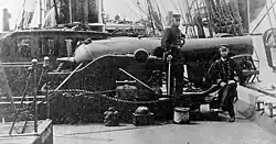 - ↑ John Adolphus Bernard Dahlgren (1809-1870), marin nordiste, promoteur dans l'artillerie d'améliorations techniques (en particulier d'un type de canon de gros calibre à âme lisse qui porte son nom) qui favorisèrent grandement les troupes nordistes. Fut surnommé « le père de l'artillerie de marine américaine » et commanda le South Atlantic Blockading Squadron à partir de 1863.
