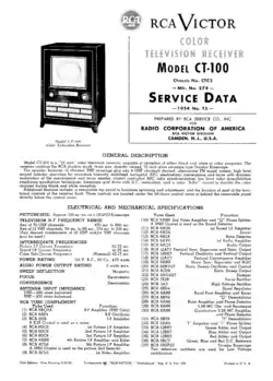 La diagonale d'écran du CT-100 est de 36 cm. Son coffrage en bois d'acajou est volumineux mais l'écran est large de 28 cm et haut de 23 cm, une dimension assez grande pour l'époque, même pour un téléviseur noir et blanc. Le CT-100 exploite toute la capacité couleur du signal NTSC défini en 1954. Son châssis comprend 36 tubes. La synchronisation des couleurs est obtenue par un circuit de contrôle de fréquence avec un détecteur de phase. Le téléviseur CT-100 est doté d'un tuner avec rotacteur à 16 positions, pouvait capter tous les canaux de télévision normalisés dans les bandes VHF et UHF, conformément à la norme M. Il exploite un signal vidéo de fréquence intermédiaire à 45,75 MHz et une sortie audio à 41,25 MHz. La bande passante de son démodulateur s'élève à 4,5 MHz. À partir du courant secteur de 110 volts disponible aux États-Unis, le transformateur et l'alimentation haute tension du téléviseur délivrent 19 500 volts au tube cathodique. L'appareil consomme 475 watts en moyenne[5].