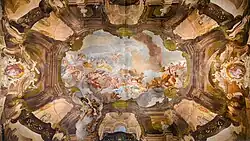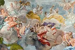 Au cours des deux décennies suivantes, les frères Daniele III et Daniele IV Dolfin ont entrepris un vaste programme iconographique pour la décoration du salon. Le but était la glorification de leur famille historique. D'abord, vers 1714, ils ont appelé Nicolò Bambini et Antonio Felice Ferrari pour peindre le plafond à fresque, puis Giambattista Tiepolo pour peindre, entre 1725 et 1729, dix toiles avec des histoires de la Rome antique[8]. En l'honneur de ses clients, Tiepolo a également peint (probablement entre 1745 et 1755) le portrait posthume de Daniel IV (mort en 1729).