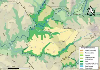 L'occupation des sols de la commune, telle qu'elle ressort de la base de données européenne d’occupation biophysique des sols Corine Land Cover (CLC), est marquée par l'importance des territoires agricoles (65,3 % en 2018), une proportion identique à celle de 1990 (65,3 %). La répartition détaillée en 2018 est la suivante : terres arables (38,3 %), forêts (34,7 %), zones agricoles hétérogènes (27 %)[30].