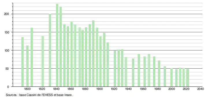 - ↑ Fiches Insee - Populations de référence de la commune pour les années 2006, 2007, 2008, 2009, 2010, 2011, 2012, 2013, 2014, 2015, 2016, 2017, 2018, 2019, 2020, 2021 et 2022.