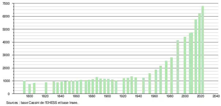 - ↑ Population municipale de référence en vigueur au 1er janvier 2025, millésimée 2022, définie dans les limites territoriales en vigueur au 1er janvier 2024, date de référence statistique : 1er janvier 2022.
