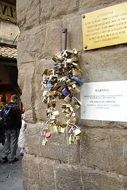 En Italie, le cadenas est devenu un symbole d'amour. Les couples accrochent un cadenas sur des lieux réputés comme sur le Ponte Vecchio à Florence ou sur le Pont Milvius à Rome avant d'en jeter la clé. Le cadenas symbolise alors leur amour. Cette tradition, inspirée de Ho voglia di te de Federico Moccia, s'est rapidement répandue à travers le pays, au point de mettre en péril certains monuments historiques par le poids résultant de l'accumulation des cadenas.