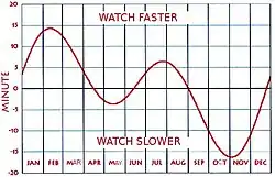 La Terre tourne autour du Soleil suivant une légère ellipse; ce fait, combiné à l'influence de l'inclinaison de l'axe de rotation terrestre, entraîne que la durée du jour varie légèrement tout au long de l'année. Le cumul de ces variations quotidiennes donne un écart annuel s'élevant jusqu'à 16 minutes en novembre et en février[2]. Cet écart est l'équation du temps. Elle avait peu d'importance jusqu'à ce que les gens aient commencé à comparer les cadrans solaires avec des horloges mécaniques. Les horloges et les montres indiquent le temps moyen local.