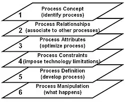 On comprend plus facilement les perspectives en considérant les propriétés spécifiques des artifacts dans la ligne et en s'assurant soigneusement que les concepts (modèles non informatiques) sont clairement séparés du système de représentation logique des concepts (modèle indépendant du type de plate-forme) et de la spécification physique de la technologie à appliquer (modèles neutres par rapport au fournisseur) des configurations des composants nécessaires pour devenir les contenus des éléments qui seront employés opérationnellement par les employés de l'entreprise dans les différents domaines (compétences d'exécution, management intermédiaire, dirigeants, etc.).