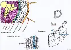 Les barrières de Caspary, aussi appelées cadres de Caspary, qui tirent leur nom du botaniste Robert Caspary, sont des structures présentes dans les plantes, notamment dans les racines primaires au niveau de l'endoderme. Ces structures participent au transit de l'eau à l'intérieur des racines. Les cadres de Caspary ne contiennent pas de subérine mais ils sont fait de lignine. Il faut faire attention car certaines espèces ont une formation de l'endoderme en fer à cheval, ces structures sont des lamelles de subérine. L'eau se trouve alors obligée de passer de cellule en cellule, par voie symplastique (ou symplasmique). En revanche cette barrière n'est pas complètement imperméable dans certaines zones de la racine, et le transport par voie apoplasmique reste possible au niveau des jeunes zones (comme les primordiums racinaires).