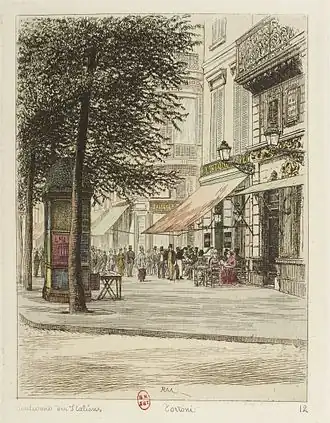 - ↑ (en) Théodore Child, “Charasteristic Parisian Cafés”, Harper's New Monthly Magazine, avril 1889, p. 687.
