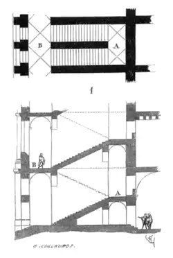 La couche supérieure horizontale d'une cage d'escalier se nomme ciel d'escalier.