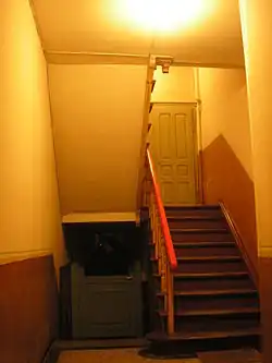 La cage d'escalier est un élément fonctionnel qui donne accès aux différents niveaux d'un bâtiment à plusieurs étages. Les éléments d'un ascenseur et de sa machinerie se situent le plus souvent dans une pièce généralement au sous-sol à proximité immédiate de la cage d'escalier.