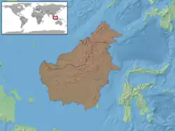 Cette espèce se rencontre au Kalimantan et à Java en Indonésie et en Malaisie orientale[1].