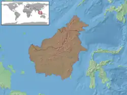 Cette espèce est endémique de Bornéo[1]. Elle se rencontre en Malaisie orientale, au Brunei et au Kalimantan en Indonésie[2].