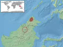 Cette espèce est endémique de Malaisie orientale[1]. Elle se rencontre au Sabah et dans le parc national Pulong Tau au Sarawak[2].