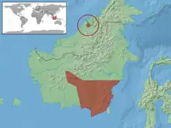 Cette espèce est endémique de Bornéo. Elle se rencontre au Kalimantan en Indonésie et au Sarawak en Malaisie orientale[1].