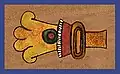 - Le Sud, quant à lui, était symbolisé par la couleur bleue et comme étant le « Côté des Épines » (Huitzlampa). Ce lieu aride, où la végétation était maigre, asséchée par le Soleil du zénith et un vent brûlant, se transformait néanmoins à la saison des pluies en un pays tropical luxuriant. C'était aussi le lieu de résidence de Macuilxochitl (Fig. 1) et de Mictlantecuhtli (Fig. 3).
