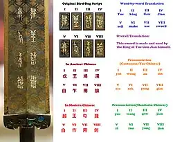 La calligraphie oiseaux et insectes (chinois simplifié : 鸟虫书 ; chinois traditionnel : 鳥蟲書 ; pinyin : )[1] est un style de calligraphie utilisé avec l'écriture chinoise, développé principalement, pendant la période des Printemps et des Automnes et la période des Royaumes combattants.