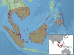 Cette espèce se rencontre aux Philippines, en Indonésie, en Malaisie, à Singapour, au Brunei, en Thaïlande et au Viêt Nam[1].