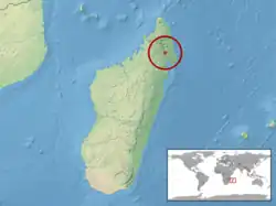 Cette espèce est endémique du Nord-Est de Madagascar[1]. On le retrouve dans le Côte Est de Madagascar spécifiquement dans la forêt littorale ‘Vohibola’ près du village Andranokoditra (18°35’22,9’’S, 49°13’50,6’’E, 9 m d’altitude), Province de Toamasina, Région Antsinanana, Centre-Est de Madagascar[3].