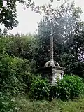 La présence votive des bubons sur le fût évoque le souvenir de la grande épidémie de peste qui sévissait au pays de Léon à la fin du XVIe siècle. Le socle affecte la forme d'un dé sur lequel repose un entablement avec architrave, frise et corniche. La frise est ornée d'un motif en chaine. Un jeu de six contreforts s'arcboutent à la partie inférieure du fût. Ces contreforts sont taillés en quart de cercle et leur ensemble dessine un dôme ajouré. Le fût circulaire et bosselé. La double console de Kersanton est aujourd'hui privée des deux ou quatre saints personnages (adossés par deux) qu'elle reçut à l'origine[1].