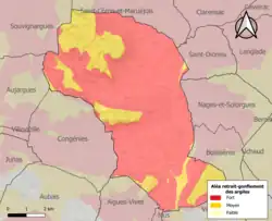 Le retrait-gonflement des sols argileux est susceptible d'engendrer des dommages importants aux bâtiments en cas d’alternance de périodes de sécheresse et de pluie. La totalité de la commune est en aléa moyen ou fort (67,5 % au niveau départemental et 48,5 % au niveau national). Sur les 2 183 bâtiments dénombrés sur la commune en 2019, 2183 sont en aléa moyen ou fort, soit 100 %, à comparer aux 90 % au niveau départemental et 54 % au niveau national. Une cartographie de l'exposition du territoire national au retrait gonflement des sols argileux est disponible sur le site du BRGM[14],[Carte 2].