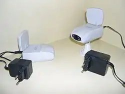Certains modèles de caméra sans-fil incluant un faisceau vision nocturne (diodes IR) ; on trouve assez souvent un micro en plus du dispositif vidéo.