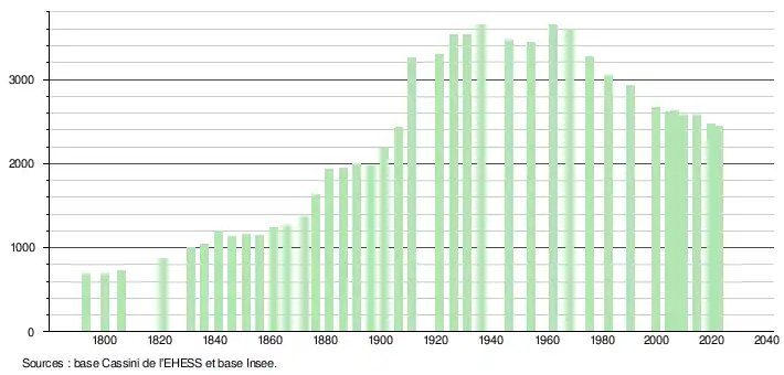 - ↑ Fiches Insee - Populations de référence de la commune pour les années 2006, 2007, 2008, 2009, 2010, 2011, 2012, 2013, 2014, 2015, 2016, 2017, 2018, 2019, 2020, 2021 et 2022.