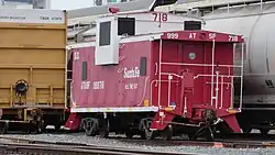 L'idée classique du "petit fourgon de queue rouge" à la fin de chaque train est née lorsque les fourgons de queue étaient peints en brun rougeâtre ; cependant, certains chemins de fer (UP et NKP, par exemple) peignaient leurs fourgons de queue en jaune ou en rouge et blanc. La plus remarquable est la Santa Fe qui, dans les années 1960, a lancé un programme de reconstruction de ses fourgons de queue dans le cadre duquel les wagons ont été peints en rouge vif avec une croix héraldique de Santa Fe de huit pieds de diamètre inscrite sur chaque côté en jaune. Certains chemins de fer, principalement le Wabash Railway, le Norfolk and Western et l'Illinois Central Gulf, ont également construit ou modernisé des fourgons de queue avec des coupoles aérodynamiques pour améliorer l'aérodynamisme et projeter une image plus moderne.