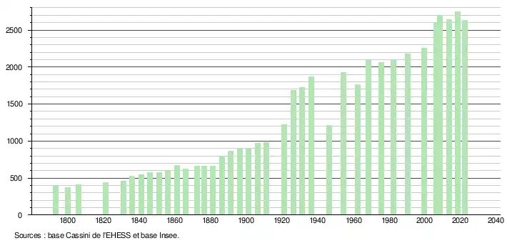 - ↑ Fiches Insee - Populations de référence de la commune pour les années 2006, 2007, 2008, 2009, 2010, 2011, 2012, 2013, 2014, 2015, 2016, 2017, 2018, 2019, 2020, 2021 et 2022.