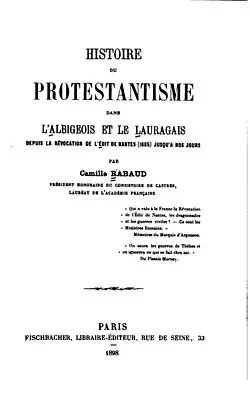 - Histoire du protestantisme dans l'Albigeois et le Lauragais, depuis son origine jusqu'à la révocation de l'Édit de Nantes 1685, Paris : Fischbacher, 1873. en ligne