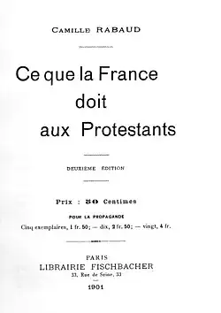 - « Ce que la France doit aux protestants », Revue Chrétienne, 1901, article en ligne; réédition Paris : Fischbacher, 1901; réédition Nîmes : Lacour-Ollé, 1998.