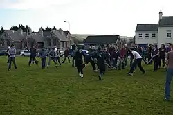 Il se jouait avec une crosse (cammag) et une balle en bois ou en liège (crick) entre deux équipes pouvant compter de quatre à des centaines de joueurs. Parfois des villages entiers y prenaient part ou s’affrontaient. Le cammag pouvait être n’importe quel bâton à bout courbé. Comme le camán irlandais moderne, le mot cammag provient de la racine celte cam, qui signifie « courbé ». Un bâton d’ajonc était une possession précieuse s’il était de dimensions respectables[1]. Des témoignages anciens nous disent qu’il était parfois recouvert de tissu ou de cuir pour être moins douloureux à frapper.