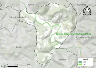 Le réseau Natura 2000 est un réseau écologique européen de sites naturels d'intérêt écologique élaboré à partir des directives habitats et oiseaux, constitué de zones spéciales de conservation (ZSC) et de zones de protection spéciale (ZPS)[Note 3]. Un site Natura 2000 a été défini sur la commune au titre de la directive habitats : « Garonne, Ariège, Hers, Salat, Pique et Neste »[26], d'une superficie de 9 581 ha, un réseau hydrographique pour les poissons migrateurs, avec des zones de frayères actives et potentielles importantes pour le Saumon en particulier qui fait l'objet d'alevinages réguliers et dont des adultes atteignent déjà Foix sur l'Ariège[27].