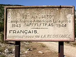 Une centaine de maquisards ont évolué dans le secteur du Malay, y formant le camp Lafayette (SAP), et furent surtout actifs lors du débarquement de Provence, lors des parachutages nocturnes qui portaient les noms de code suivants[8],[9],[10] :