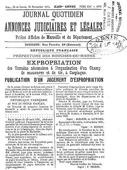 - ↑ Journal quotidien des annonces judiciaires et légales de Marseille du 16 novembre 1895.
