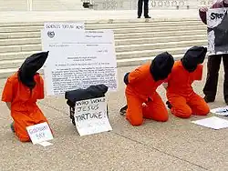 Ce lieu de détention hors de tout cadre juridique attire les critiques de l'opinion publique internationale, des gouvernements et des associations de défense des droits de l'homme. De nombreux témoignages et documents font état de conditions de détention dégradantes et de l'emploi de techniques de torture sur des prisonniers[3],[4],[5]. En juin 2006, la Cour suprême des États-Unis déclare illégales les procédures judiciaires d'exception mises en place à Guantánamo.