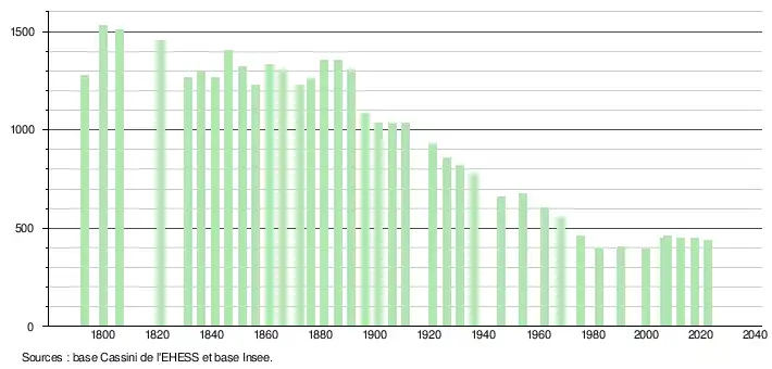 - ↑ Fiches Insee - Populations de référence de la commune pour les années 2006, 2007, 2008, 2009, 2010, 2011, 2012, 2013, 2014, 2015, 2016, 2017, 2018, 2019, 2020, 2021 et 2022.