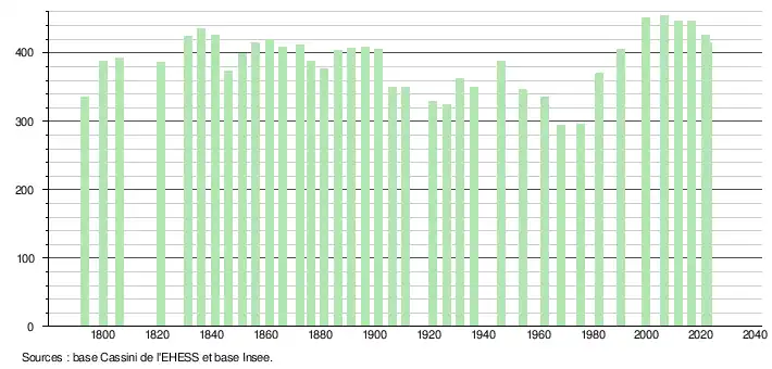 - ↑ Fiches Insee - Populations de référence de la commune pour les années 2006, 2007, 2008, 2009, 2010, 2011, 2012, 2013, 2014, 2015, 2016, 2017, 2018, 2019, 2020, 2021 et 2022.