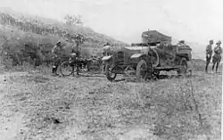 Le lendemain, un poste avancé est installé à l'oasis de Moghara, à environ 153 km à l'ouest du Caire. Murray ordonne une extension du chemin de fer léger de Kharga à l'oasis de Moghara, un nouveau chemin de fer léger du Nil à Beni Mazar à Bahariya et la construction d'une ligne de blockhaus le long de la piste de Darb el Rubi de Samalut à Bahariya, la route du nouveau chemin de fer[34]. L'Imperial Camel Corps est formé en novembre 1915 principalement à partir de compagnies de la 1re division australienne et de la 2e division australienne, de l'Australian Light Horse, des troupes néo-zélandaises, de la Yeomanry britannique et de l'infanterie territoriale. Le corps devient la principale force de défense de l'ouest de l'Égypte, combinant le transport en chameau et les véhicules motorisés. Les patrouilles de voitures Ford légères et de batteries motorisées blindées légères révolutionnent l'occupation du désert occidental, augmentant la portée des patrouilles de dizaines de kilomètres à des centaines de kilomètres en véhicule. En raison des distances en jeu, les patrouilles opèrent de manière indépendante mais s'avèrent si efficaces que les Senoussis sont rapidement coupés de la vallée du Nil et isolés dans les oasis qu'ils occupent toujours[35].
