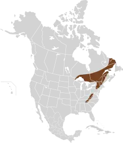 Ce mammifère vit dans la région des Appalaches, en Caroline du Nord et en Gaspésie. Au Canada, cette espèce est présente dans le Labrador, au Québec, en Ontario et en Nouvelle-Écosse.