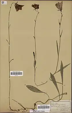 Le botaniste pré-linnéen Joseph Pitton de Tournefort définit le genre Campanula dans Institutiones rei herbariae[4], et lui attribue toute une série d’espèces : Campanula maxima, Campanula vulgatior, …Campanula Persicaefolio,… ; Linné a généralement repris les noms de genres de Tournefort[5].