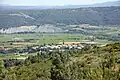 Vue générale de Camplong-d'Aude au pied de la montagne d'Alaric. | |||||