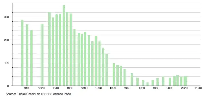 - ↑ Fiches Insee - Populations de référence de la commune pour les années 2006, 2007, 2008, 2009, 2010, 2011, 2012, 2013, 2014, 2015, 2016, 2017, 2018, 2019, 2020, 2021 et 2022.
