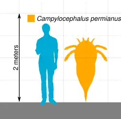 L'espèce C. permianus, découverte en Russie dans des dépôts du Permien supérieur, est la seule espèce de Campylocephalus suffisamment bien conservée pour permettre une estimation de sa taille, que plusieurs publications estiment à 1,4 mètre de long. C'est l'une des dernières espèces d'Euryptérides vivantes connues : elle s'est éteinte juste avant ou pendant l'extinction du Permien-Trias, il y a 251,9 millions d'années. Avant cette extinction massive, les Euryptérides ont connu un déclin progressif durant des millions d'années, tant en nombres et qu'en diversité : ainsi, Campylocephalus est le seul genre connu d'Euryptérides à avoir vécu au cours des plus de 20 millions d'années qui ont suivi l'extinction du genre apparenté Hastimima.