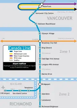 La Canada Line est une ligne de métro canadienne automatique, située dans la région du Grand Vancouver, en Colombie-Britannique. Ouverte en 2009, elle est la troisième ligne du réseau du SkyTrain, exploité par la société TransLink. Elle est représentée en turquoise sur les cartes du réseau, pour 19,2 km de rails. La voie principale relie Vancouver à Richmond tandis qu'une voie secondaire de 4 km relie la station Bridgeport à l'aéroport de Vancouver[1].